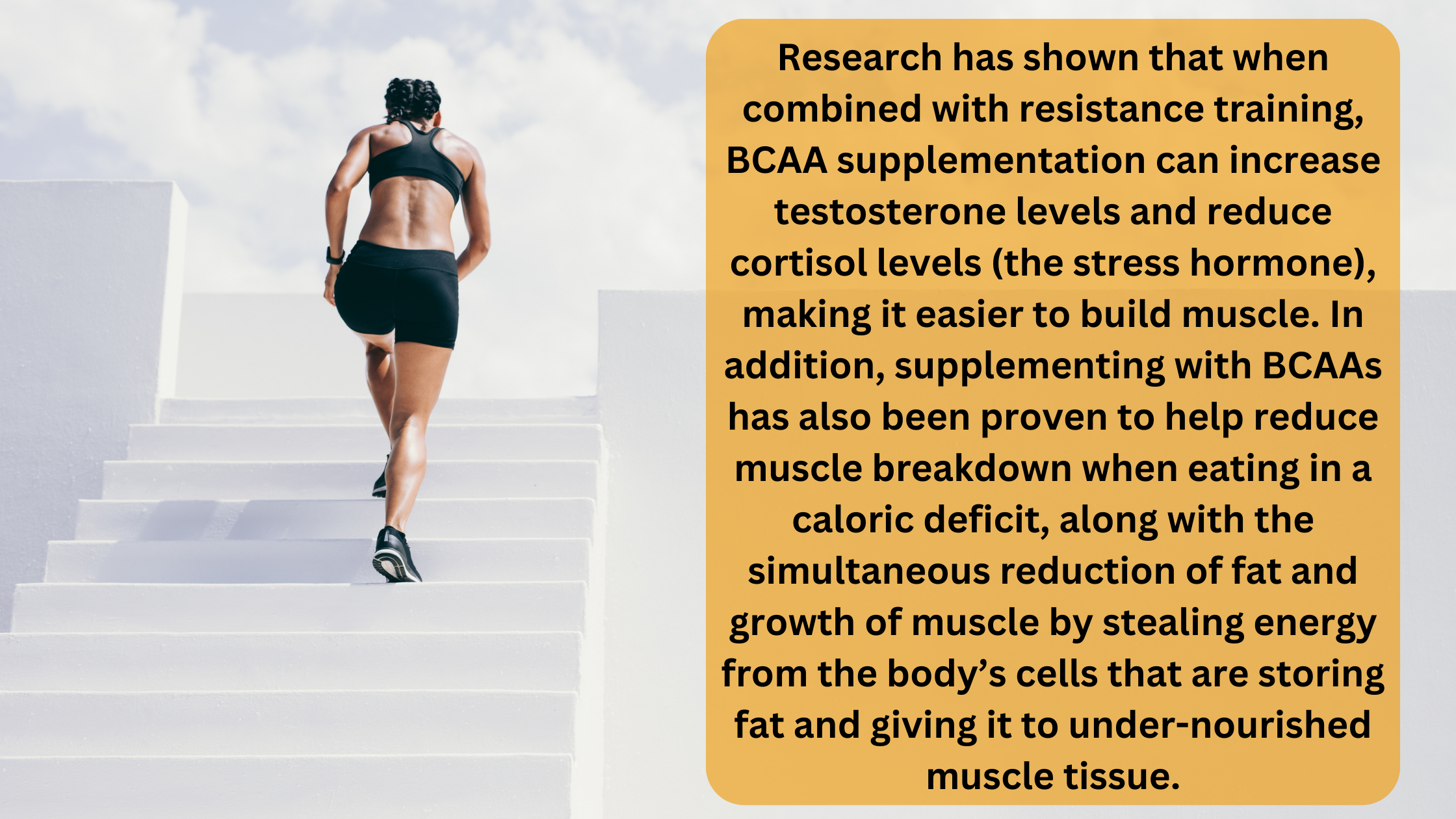 Branch Chain Amino Acids (BCAAs) are research proven, when in a 2:1:1 ratio, to naturally increase muscle growth and reduce muscle breakdown during and after workouts. Additionally, BCAAs can help reduce muscle soreness, fatigue, and even improve recovery time.